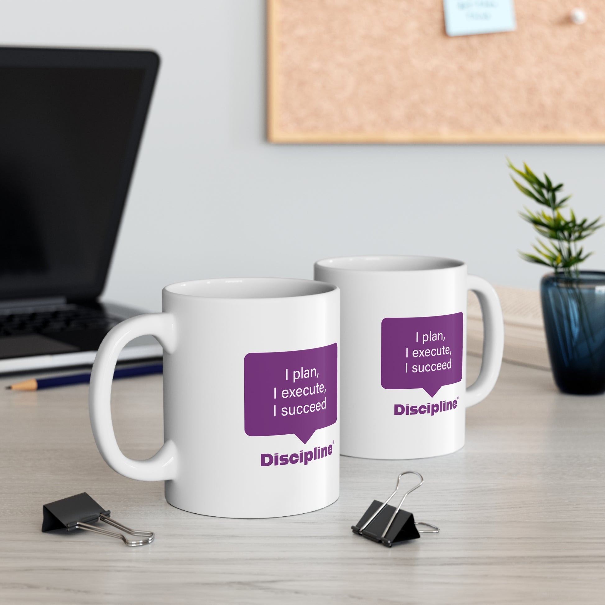 The Discipline®️ mug from the ‘Talking Strengths’ mug series. Perfect for enjoying your favourite drink, any time of day or night. This mug features a relatable speech bubble in the CliftonStrengths®️ Executing domain colour related to the Discipline®️ talent theme.